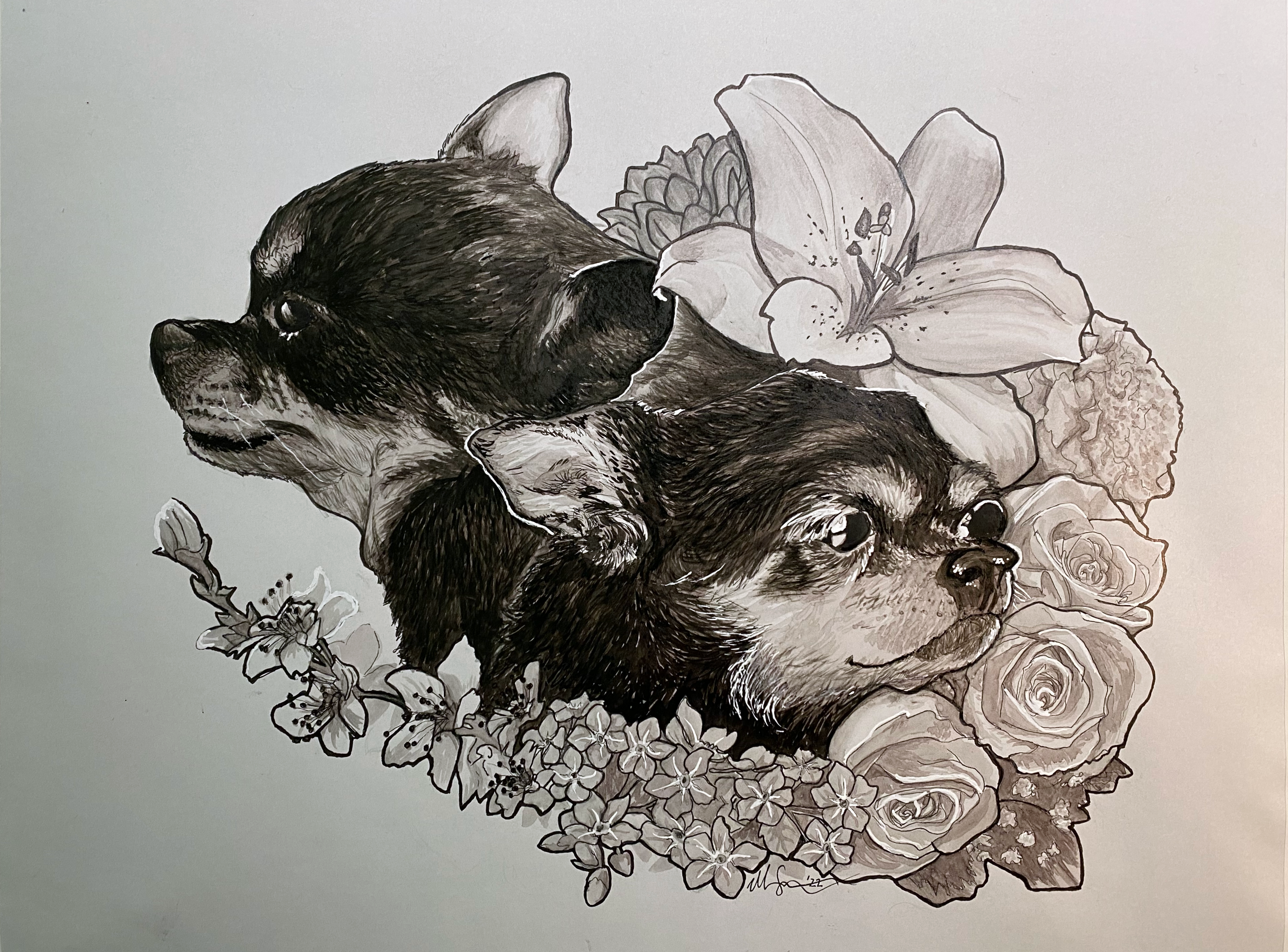 Meagan started drawing young like most kids, but by middle school was known as “the art kid”. She got her first commission thanks to her stepmom who arranged for her to do in-home murals for family friends. Meagan got her Bachelor’s degree in Fine Arts at the University of Nevada, Reno with a focus on drawing and has one way or another managed to squeeze art into almost all of her jobs. She loves being creative and working with her hands.
